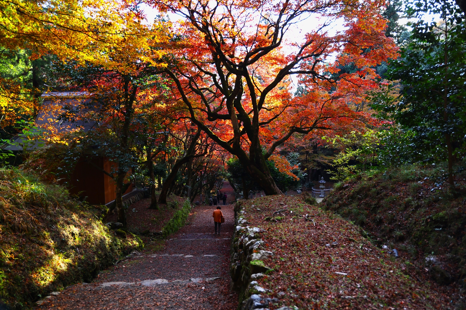 滋賀県 鶏足寺(旧飯福寺)の紅葉 2025.11.20 旧飯福寺は、735年僧行基によって開基された古寺でしたが、荒廃するも799年最澄により再興された。鶏足寺の名称は、雪が積もった朝にお堂の前の庭に鶏の 足跡があったことから名づけられたとお聞きしました。それにしても変わった名前です。計測時までの道のりには地元の人が営業するお店も出来て観光地化が進んでいました。 駐車料金は、協力金として鶏足寺の入場料も含んで500円/人でした。