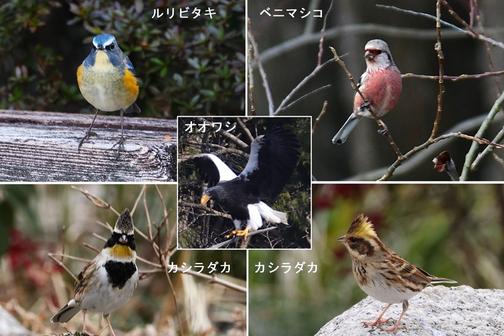 | ここ数日は暖かい日が続き春の陽気でした。湖北の山本山のおばあちゃんを見に出掛け、オオワシとベニマシコに出会いました。 オオワシを撮影していた隣の方からルリビタキの撮影ポイントを教えていただき15日に撮ってきました。 1日粘らないと駄目かと思って行ったのですが、すぐに出会えました。5人ほど撮りに来て見え、一緒に撮らせてもらいました。 その中で御親切にカシラダカが撮れる場所に案内していただきました。着いた時にはいなかったのですが、その方が帰られて間もなく 10羽ほど来てくれました。とても良いタイミングで撮りたかった野鳥が撮れて充実した3日間でした。明日は、ドクターイエローの 撮影に出掛ける予定です。使用機材(CanonR5,600mm4LISUSM×2。100mm-500mm×1.4。NikonD850、80mm-400mm) |