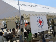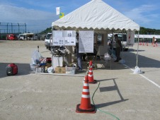 午前8時 日赤三重支部のテントで通信所の設営を開始したところ |