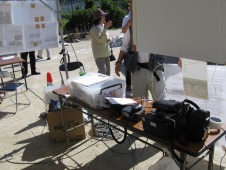 午前11時30分閉会式開始 コミニティーFM局の特設スタジオがライブ中継を行なっているところ |